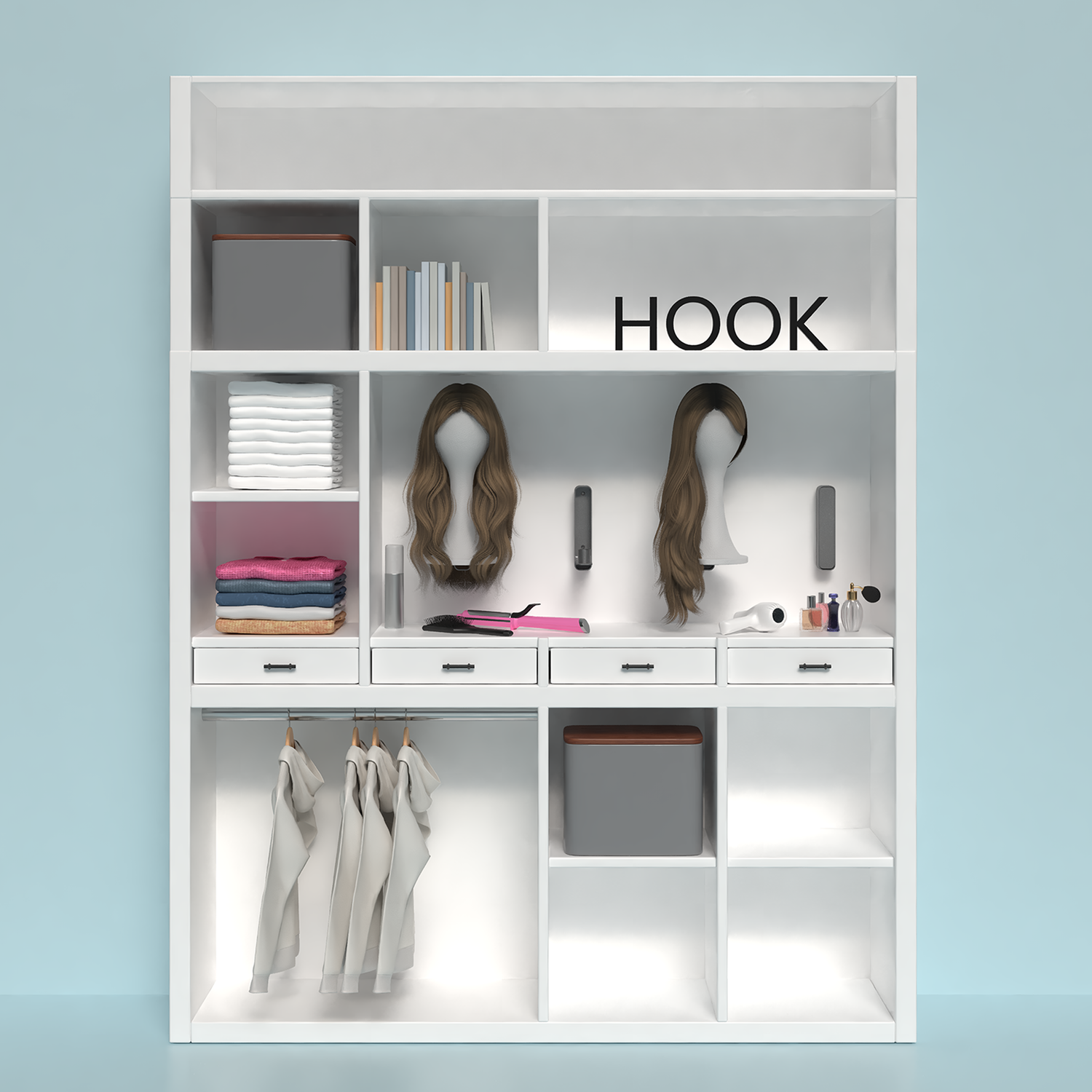 Need seamless wig storage? These hooks integrate right into your closet shelves, giving your wigs a dedicated space that's stylish, organized, and always within reach